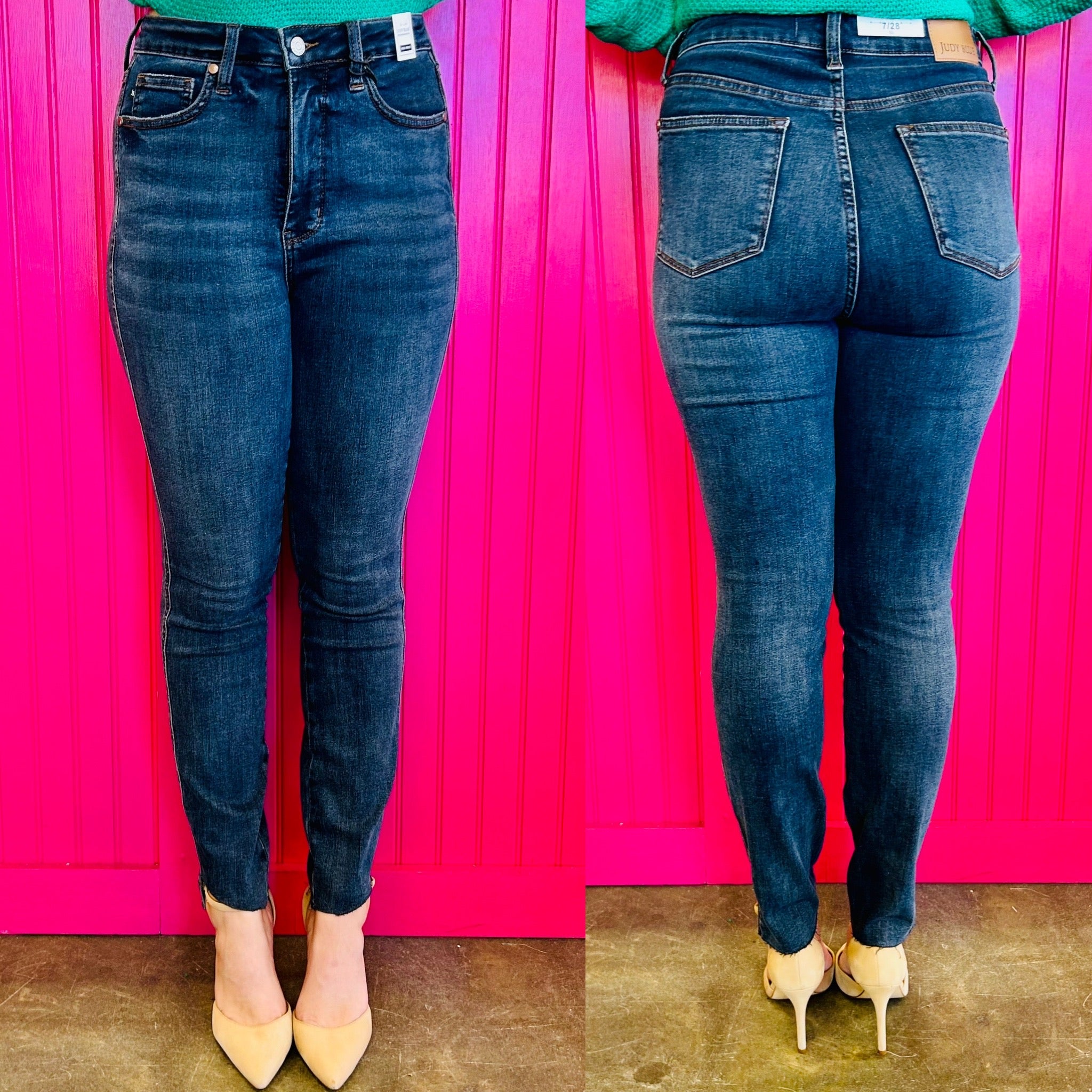 High-waisted tummy control step hem skinny jeans by Judy Blue.