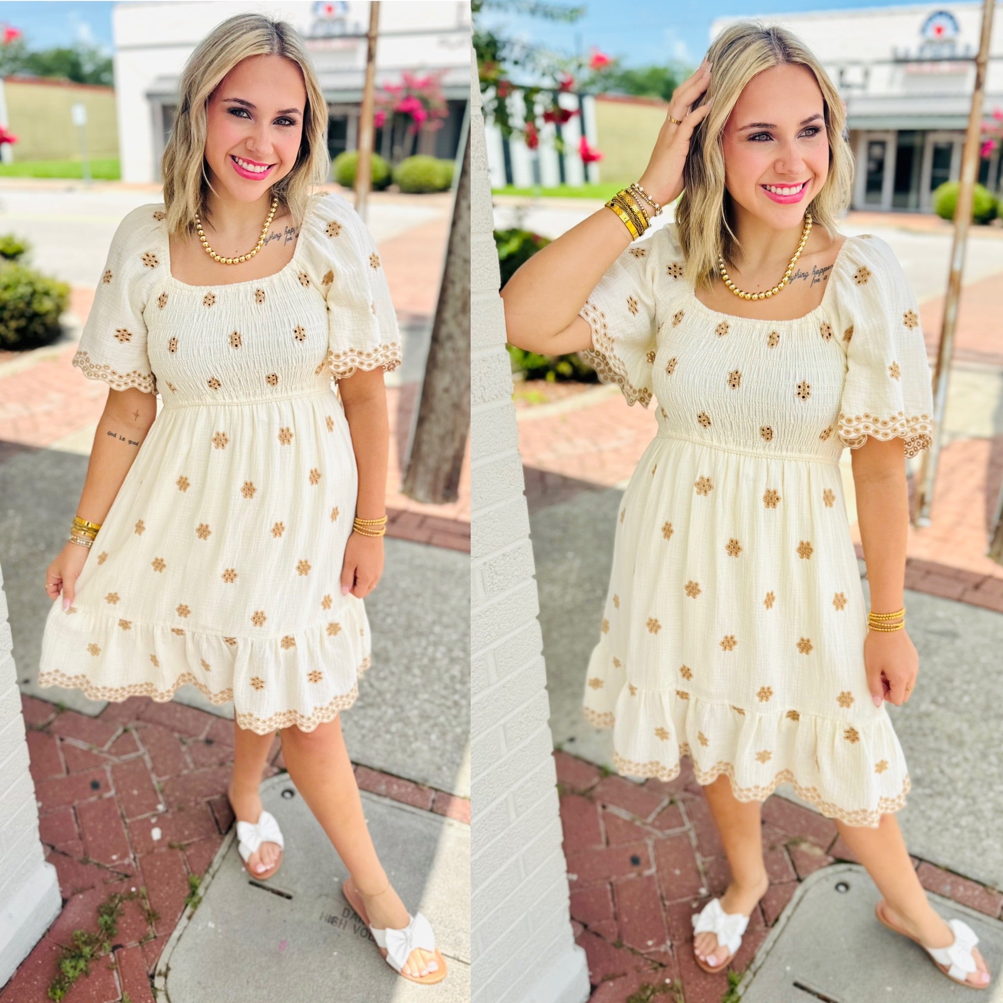 Embroidered cotton gauze dress by Easel