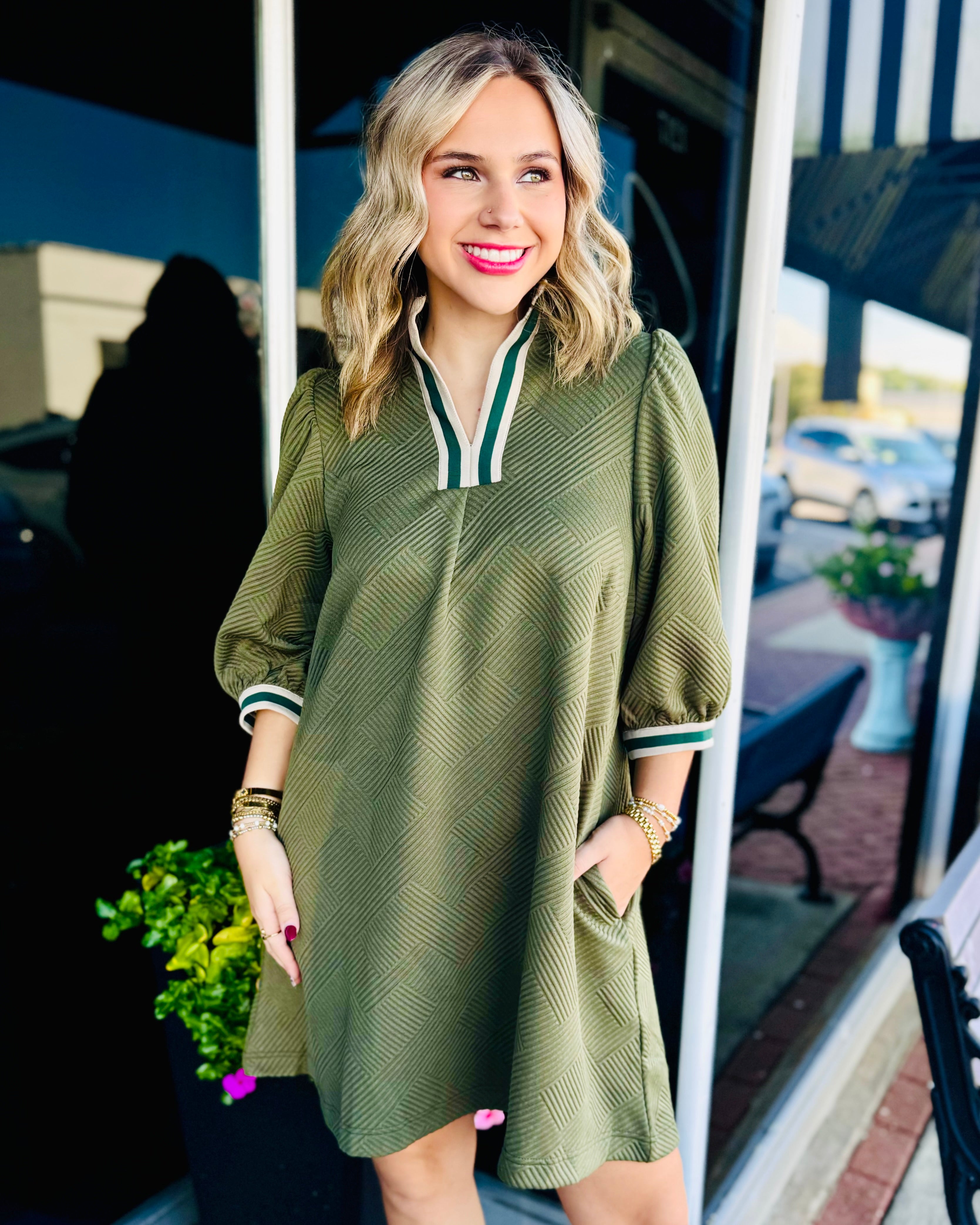 • 3/4 length puff sleeves