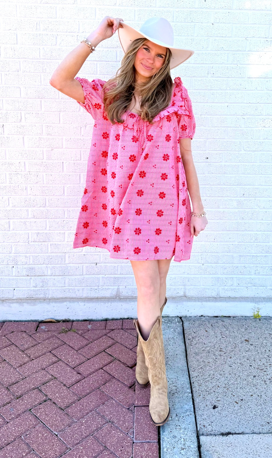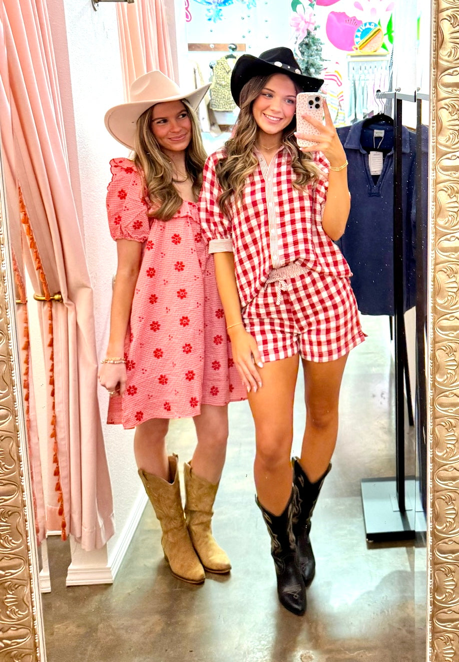 Step out in a dress that captures timeless spring charm. The Emily Puff Sleeve Mini Dress pairs puffed short sleeves with intricate floral embroidery for a look that’s both sweet and chic.