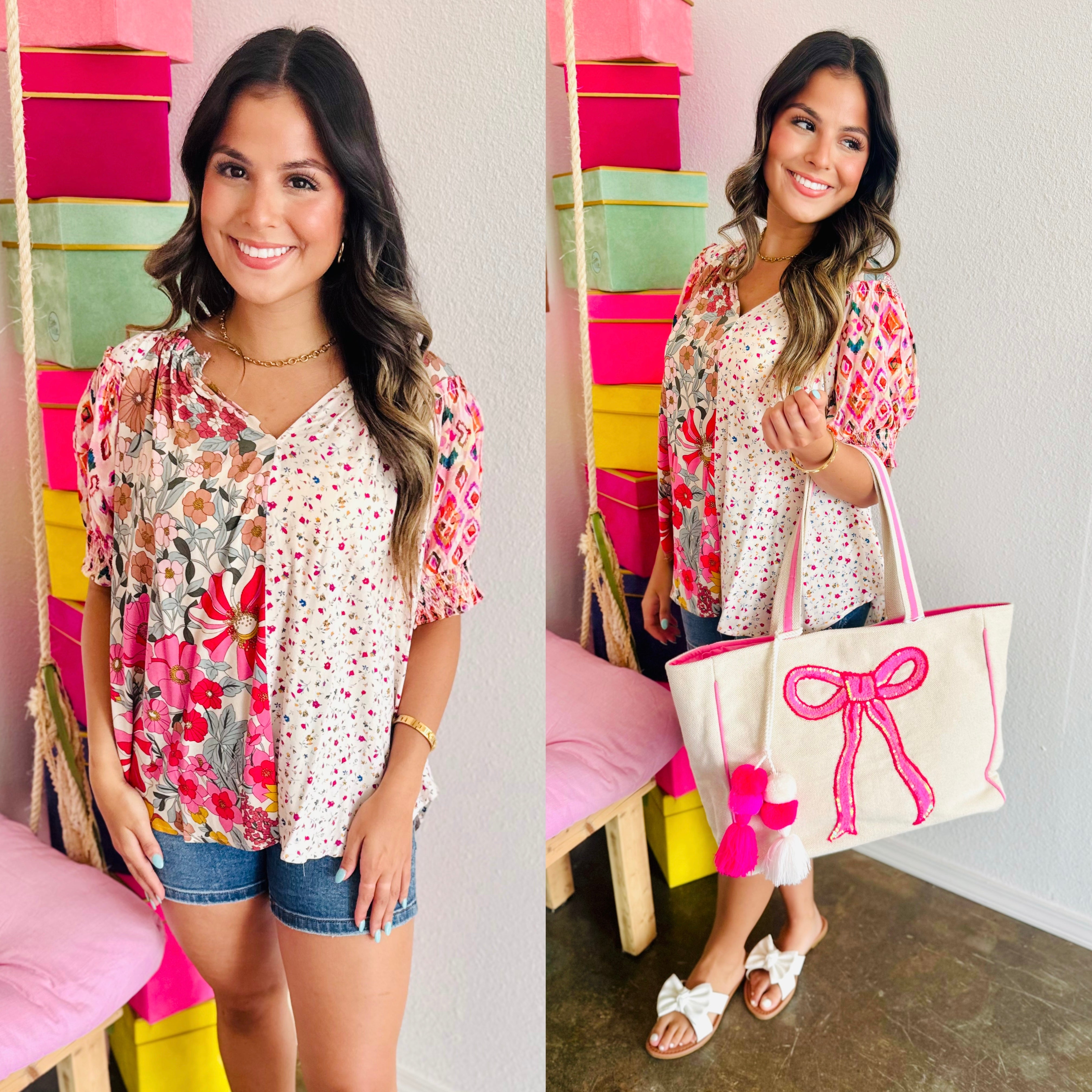 Woven print mix and match peasant top