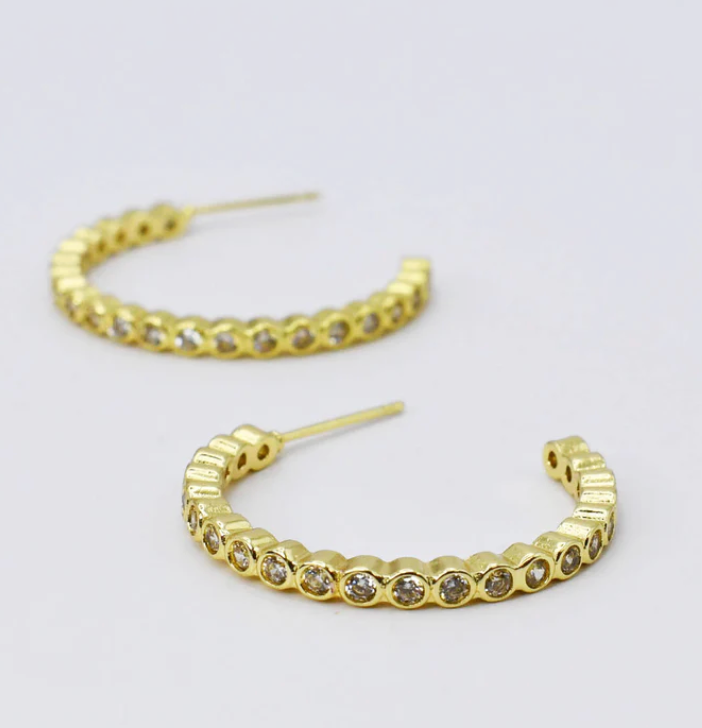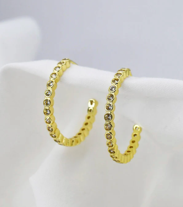 Gold plated gorgeous earrings with a clear coat to protect the color with crystals.