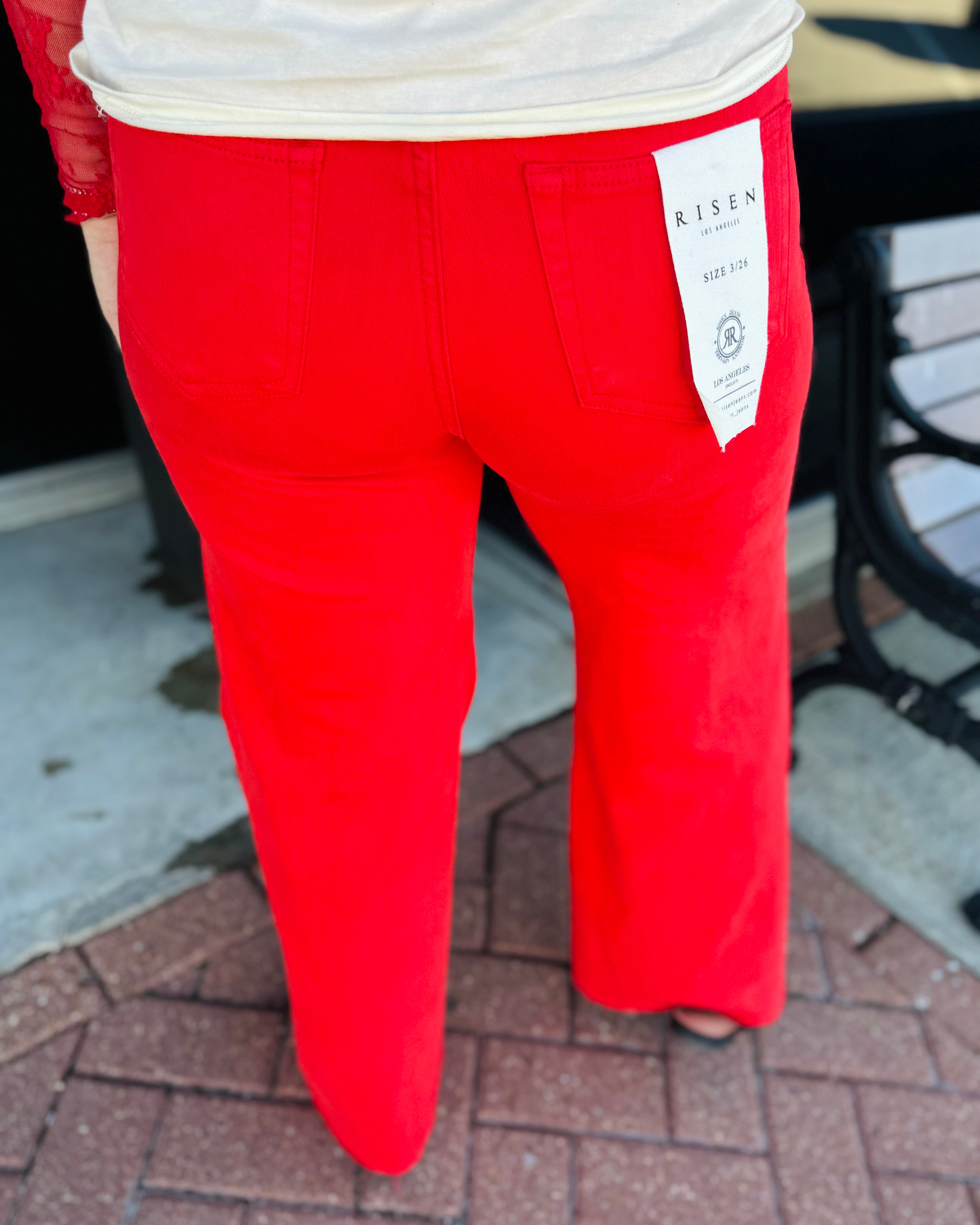 Embrace effortless style with these Risen high-rise wide-leg palazzo jeans, designed for a flattering silhouette that commands attention. Featuring a generous 10 3/4" rise and 31" inseam in size 3/26, these jeans deliver the perfect balance of comfort and contemporary flair. The flowing wide-leg cut creates an elongating effect while the elevated waistline ensures a secure, polished fit that works from day to night.