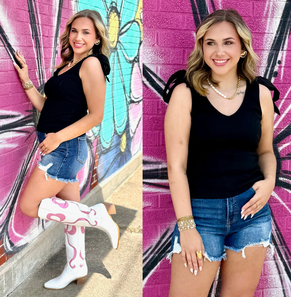 Rib knit shoulder tie tank top by Bibi
