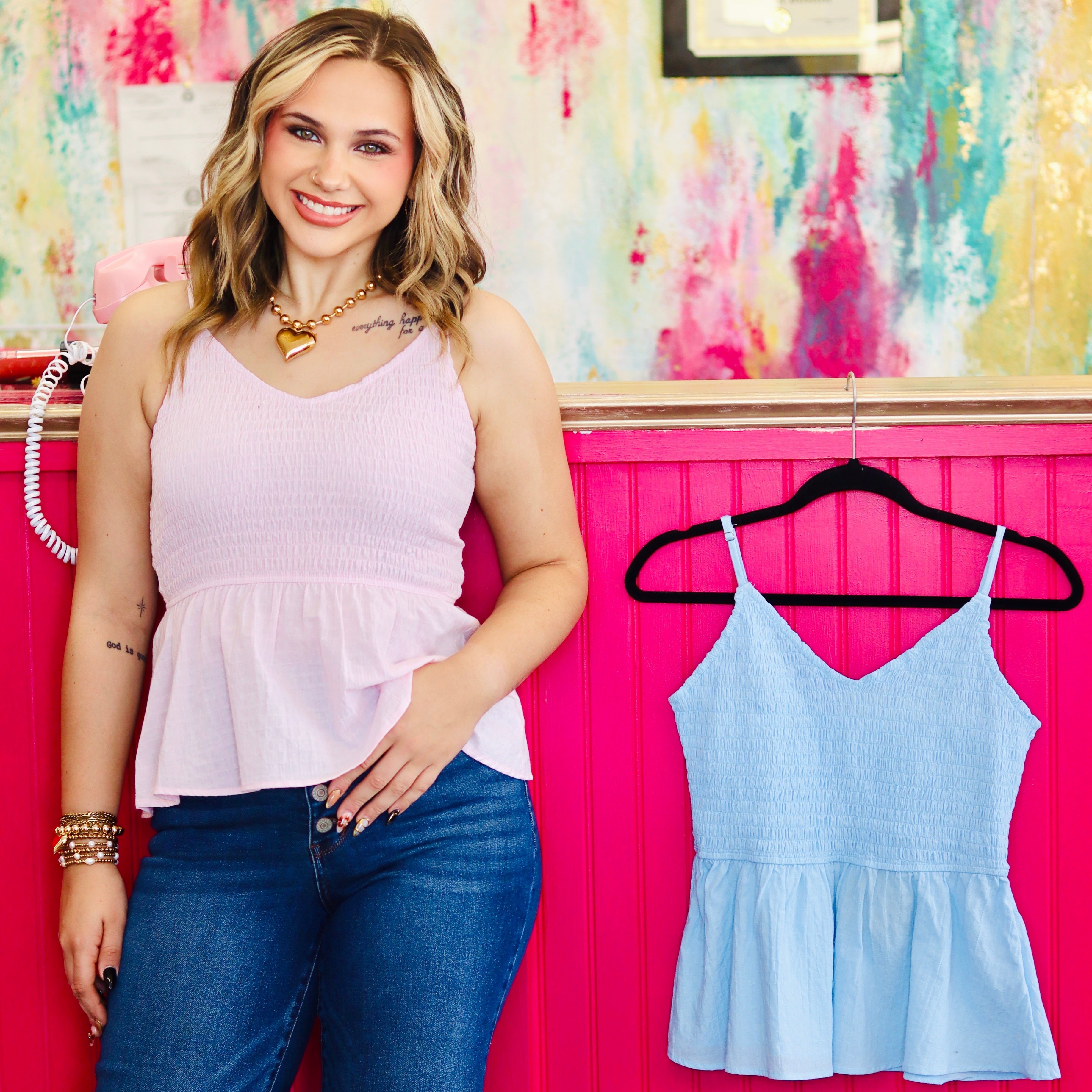 Eyelet woven sleeveless elasticized top with adjustable straps