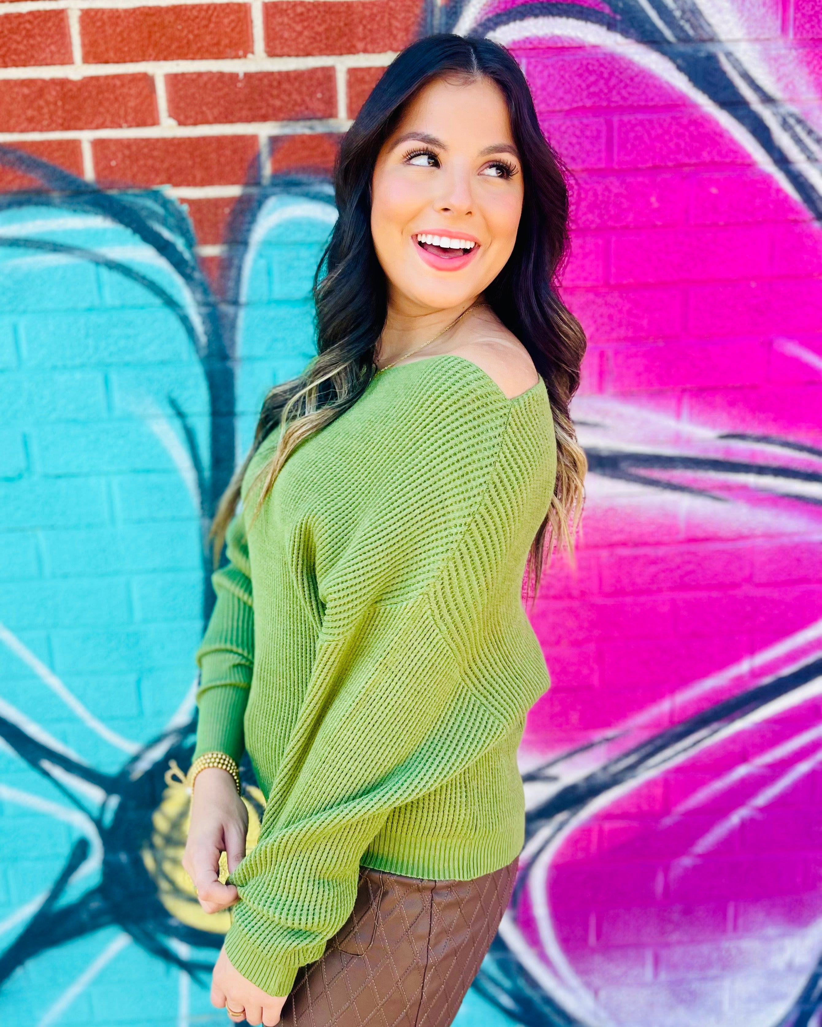 Experience the ideal combination of comfort and elegance in this off-shoulder top made from cozy waffle knit fabric, designed for a stylish yet relaxed appearance.