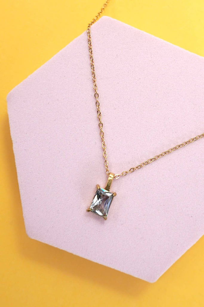 18K Stainless Steel Tarnish-Free Glass Stone Necklace, a sophisticated and timeless piece featuring a dazzling glass stone pendant on a high-quality 18K stainless steel chain. Designed to resist tarnishing and maintain its brilliance,